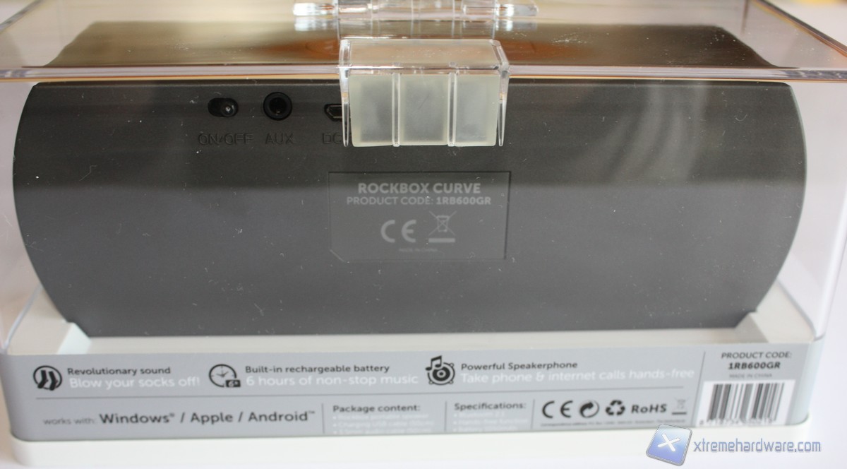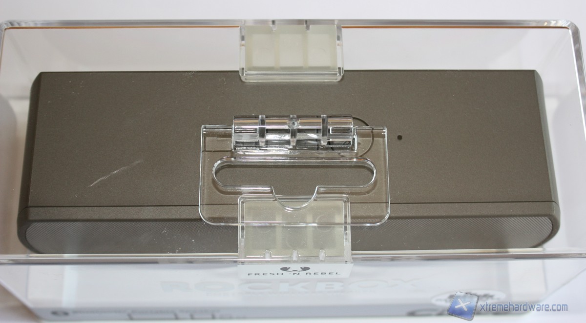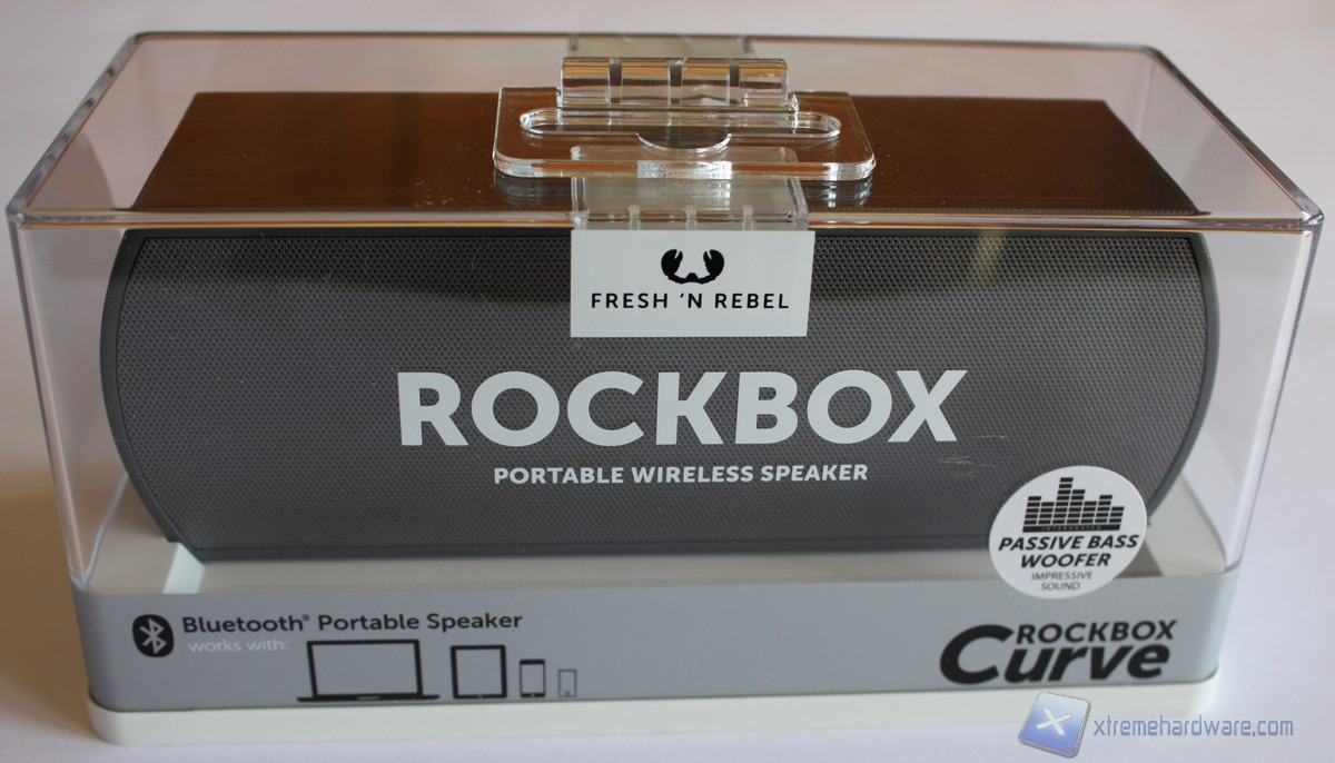 La confezione del Rockbox Curve altro non è che un cofanetto in plastica trasparente, che permette di vedere immediatamente il prodotto contenuto, con una base in plastica. Il design curato parte già dalla confezione che non è la classica scatola di cartone con stampate immagini e specifiche. Fresh ‘N Rebel ha voluto curare in tutto e per tutto i dettagli dei propri prodotti.