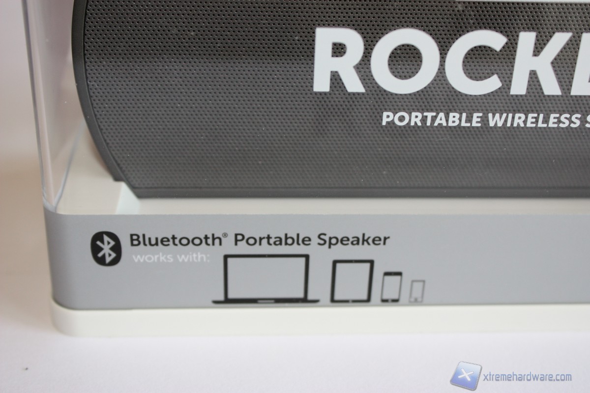 Nella parte frontale troviamo il logo ed il modello del prodotto stampati ed un adesivo con la caratteristica “Passive Bass Woofer” evidenziata. Non manca inoltre un ulteriore dettaglio che ci ricorda che il prodotto utilizza la connessione Bluetooth per connettersi ai dispositivi quindi avremo piena compatibilità anche con terminali di non ultima generazione.